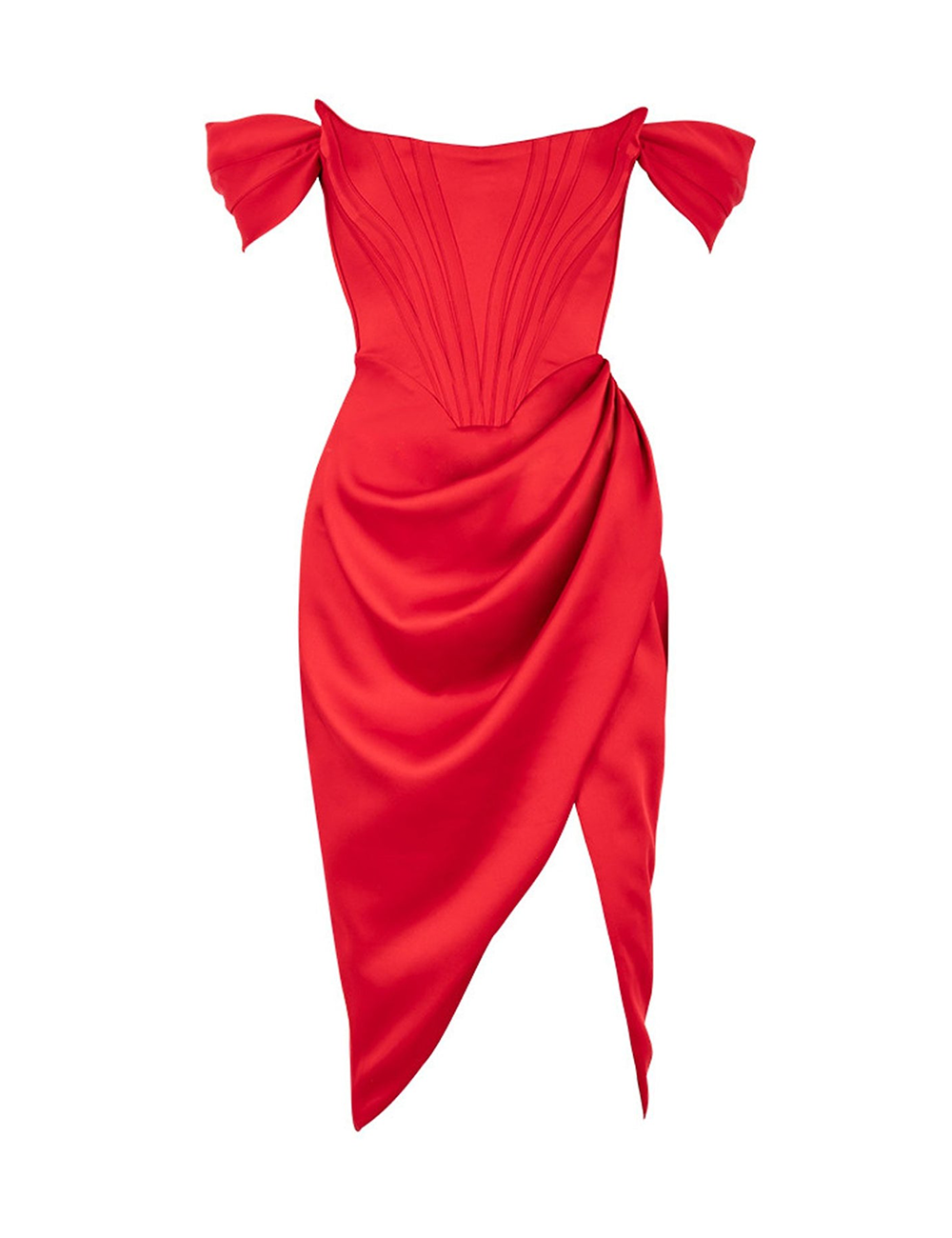 SHOW SATIN 97% Polyester 3% Lycra Double-breasted front slit, is not stretch. The skirt part is double-breasted. Dry cleaning recommended