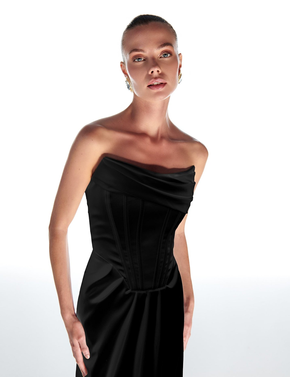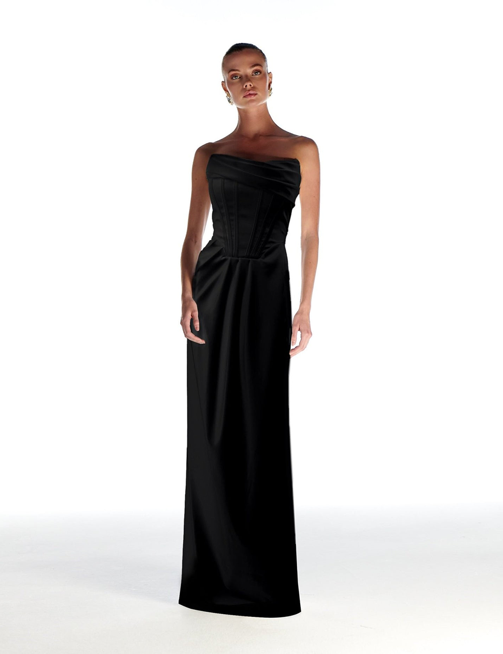Black Satin Underwire Slit Maxi Dress Satin 97% Polyester 3% Lycra Dry cleaning recommended.