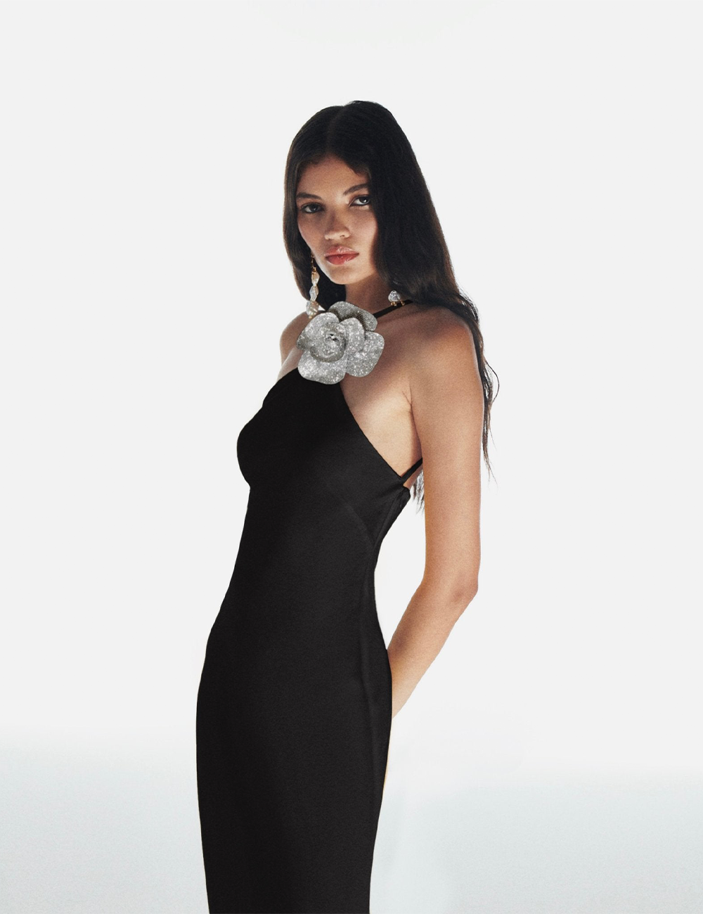 Fabric: Satin Rose accessory with Swarovski stones. Unlined. Dry cleaning recommended.